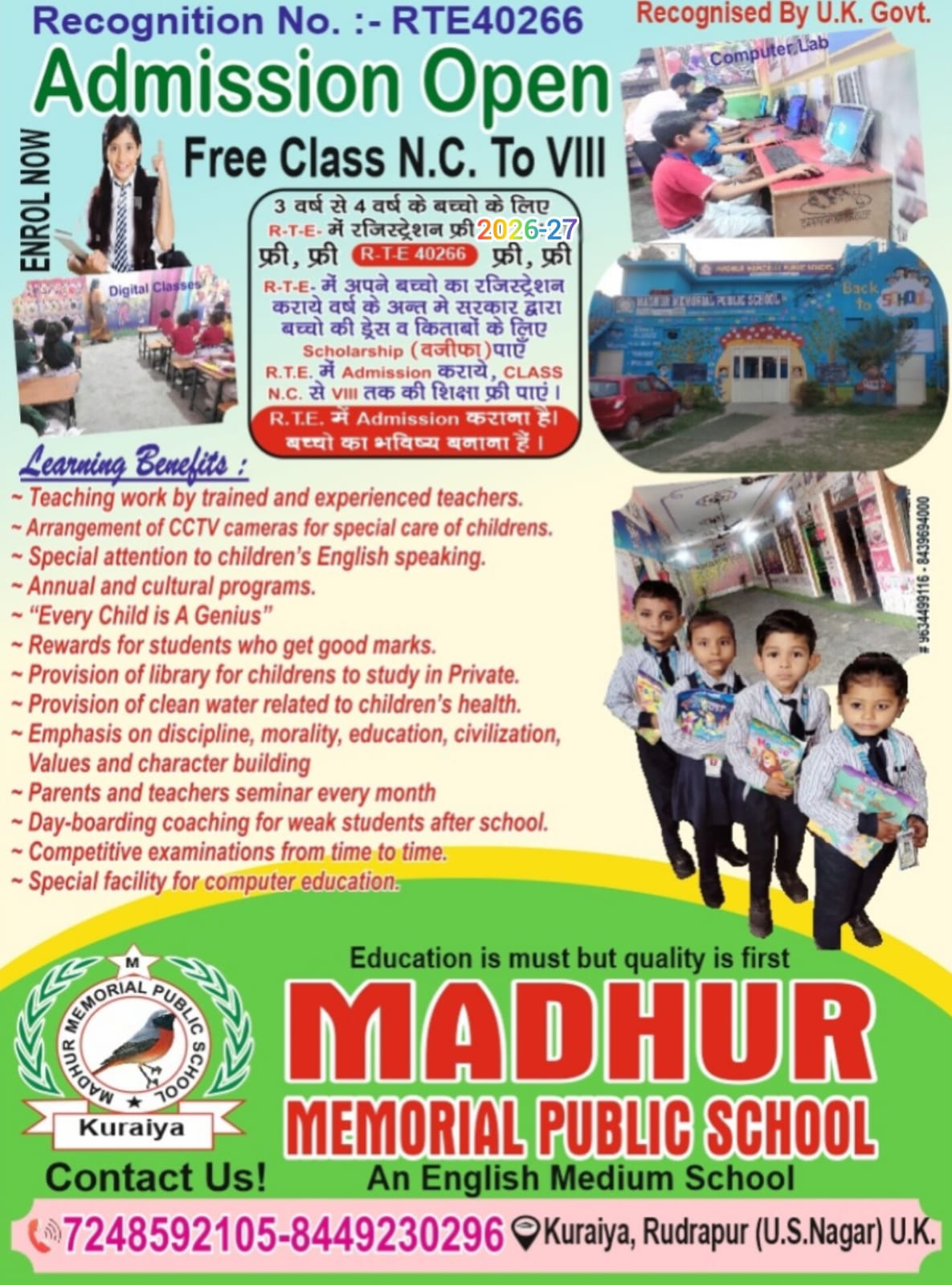 "Welcome to Madhur Memorial Public School, where we believe that every child is a unique spark of potential. Established in 2010, our institution has been a pioneer in providing a balanced blend of modern technology and traditional values. Our mission is to nurture future leaders through a holistic approach to education that goes beyond textbooks.